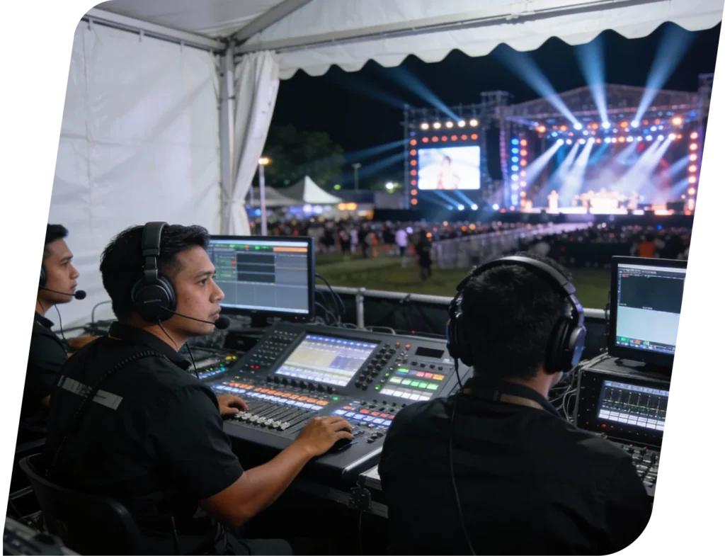 Hadirkan kualitas produksi kelas atas untuk setiap event Anda. Kami mengintegrasikan teknologi terbaik untuk menjamin siaran yang stabil, tajam, dan interaktif.
